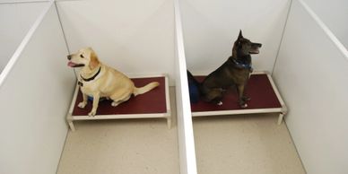 Our Standard Suites are 3'x7' with 4' walls and can fit up to two 100lb dogs.