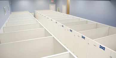 Our Queen Suites are 4'x7' with 4' or 7' walls and can fit up to three 100lb dogs or two Great Danes.